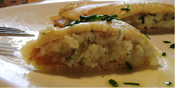 Die fertigen Knödel mit einem Siebschöpfer aus dem
